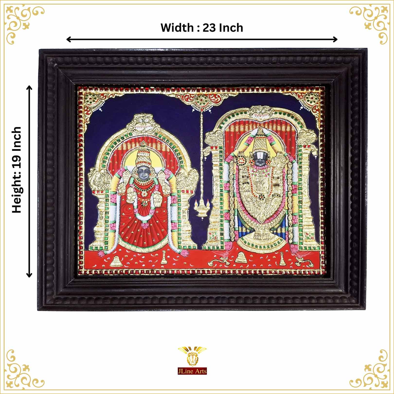 Balaji Padmavathi Tanjore Painting 23×19 Inch | 22K Gold Foil | Teakwood Frame Art