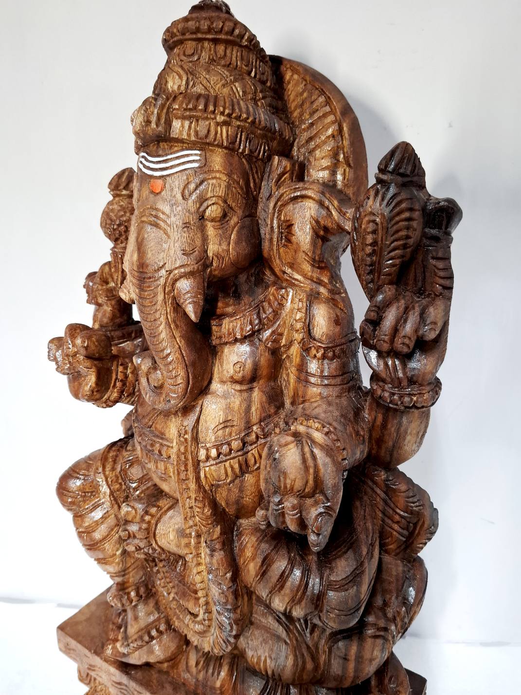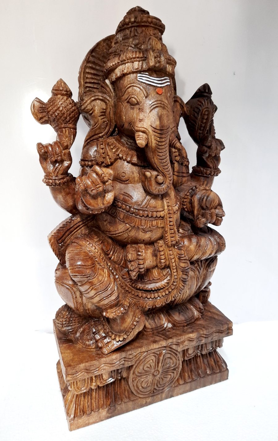 Wooden Ganesh Statue Antique Finish 24 Inches, / 2 Feet, Hand carved and Hand Polished in Solid wood, Ever Lasting long life for Generations, Free Shipping Pan India, USA (All States), UK, SINGAPORE, Europe & Global Shipping now, Ready to Ship.