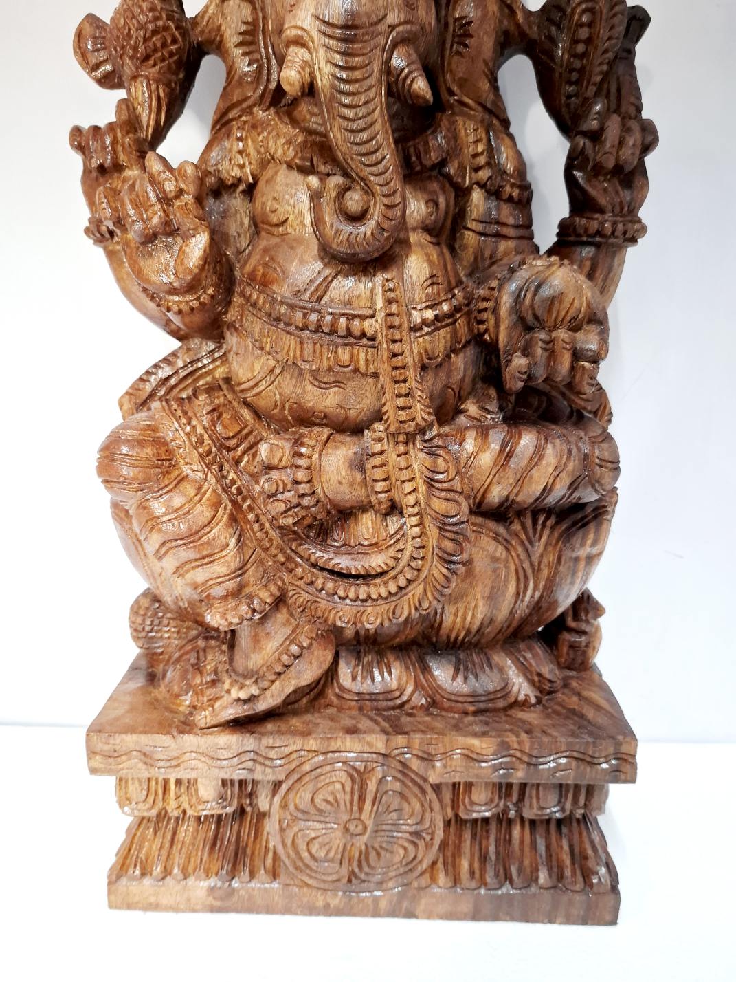 – Materials: Ever Lasting Country Wood & Solid Wood Carving – Art: This Ganesha statue is entirely hand carved by the talented wood artisans of South India and is undoubtedly one of a kind. – An artist individually Hand polished, all the details on our solid wooden sculpture. Hand carved, Hand Painted and later hand polished! – Weather proof & Maintenance Free, Wipe with cotton cloth is enough.