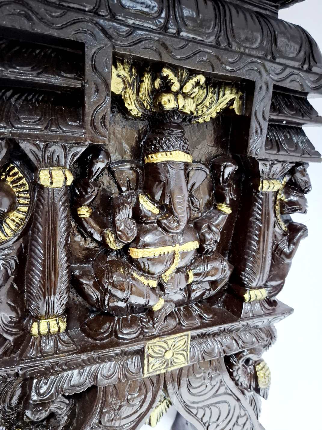 Hand-Carved Craft – Exquisite Kavadi-style Lord Ganesha wall panel made from solid wood.