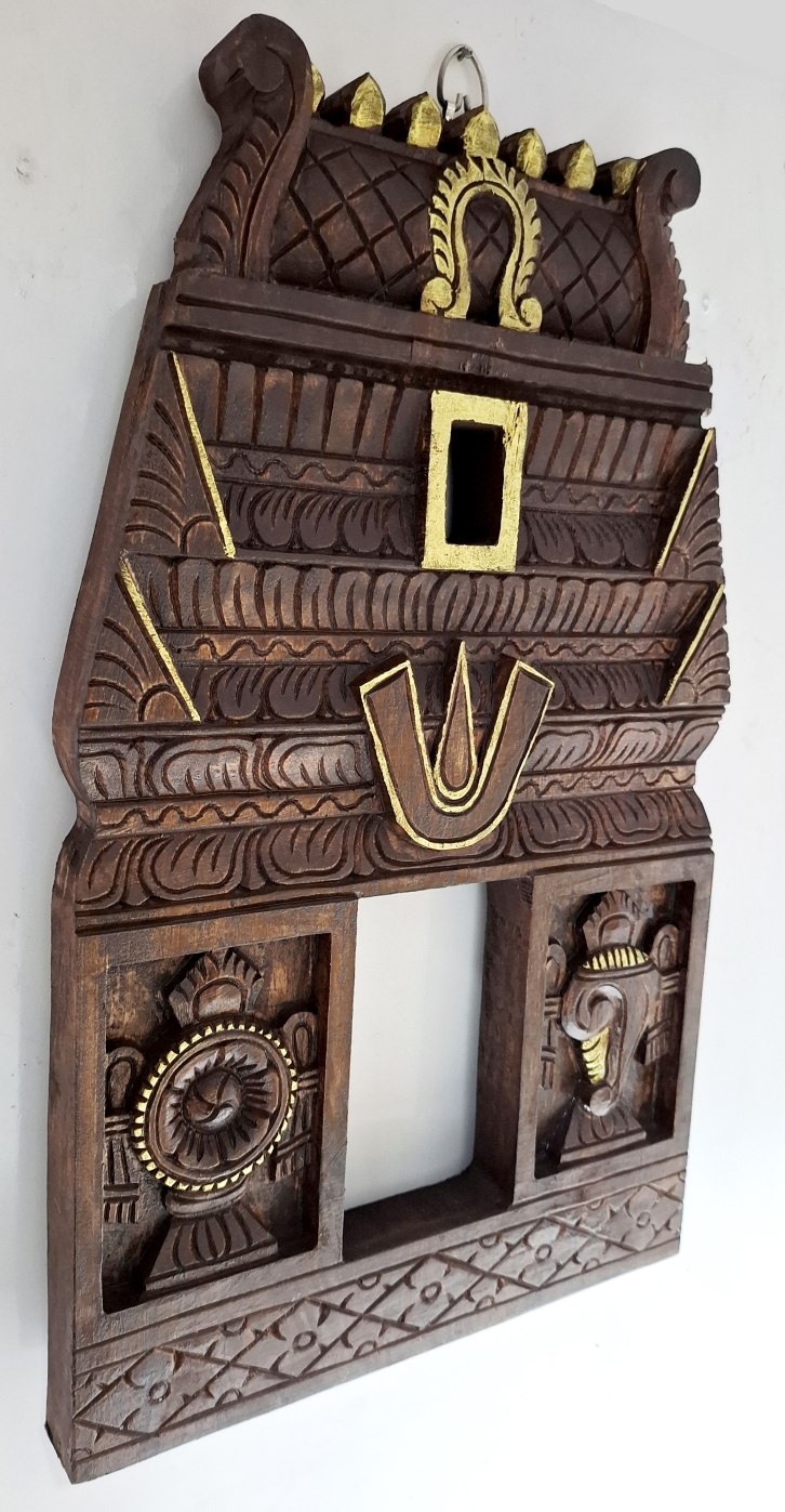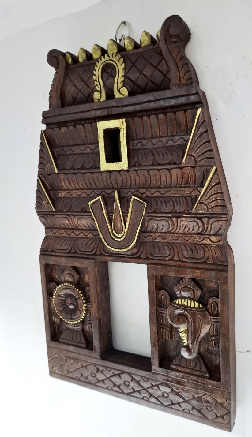 Wooden Gopuram Wall Panel 18 Inch | Shanku Chakra Namam | Hand-Carved Wood