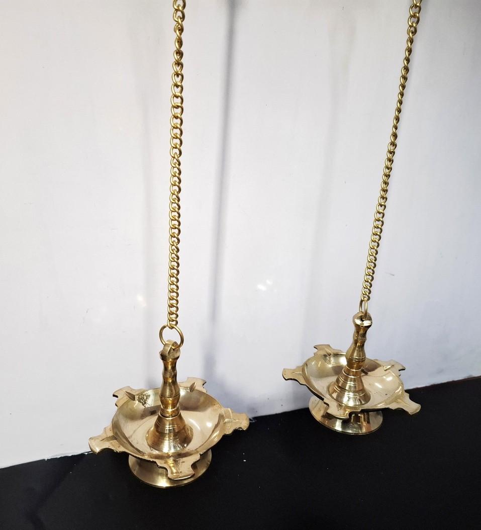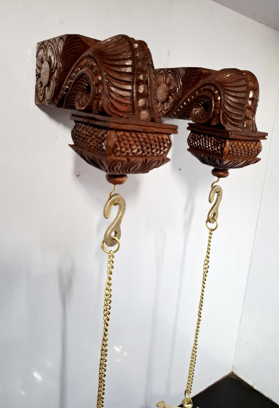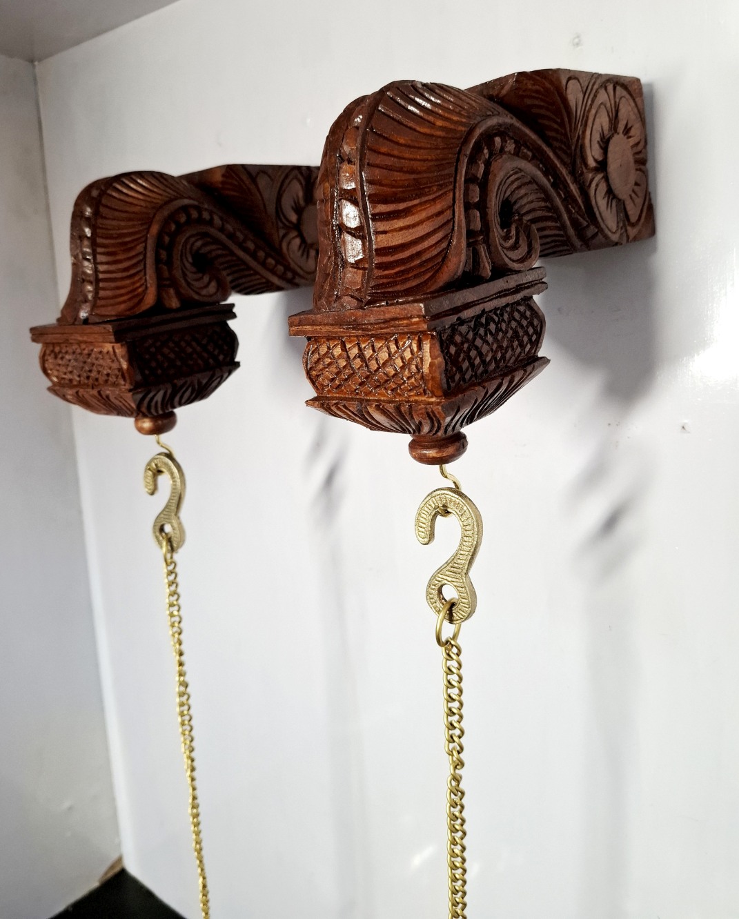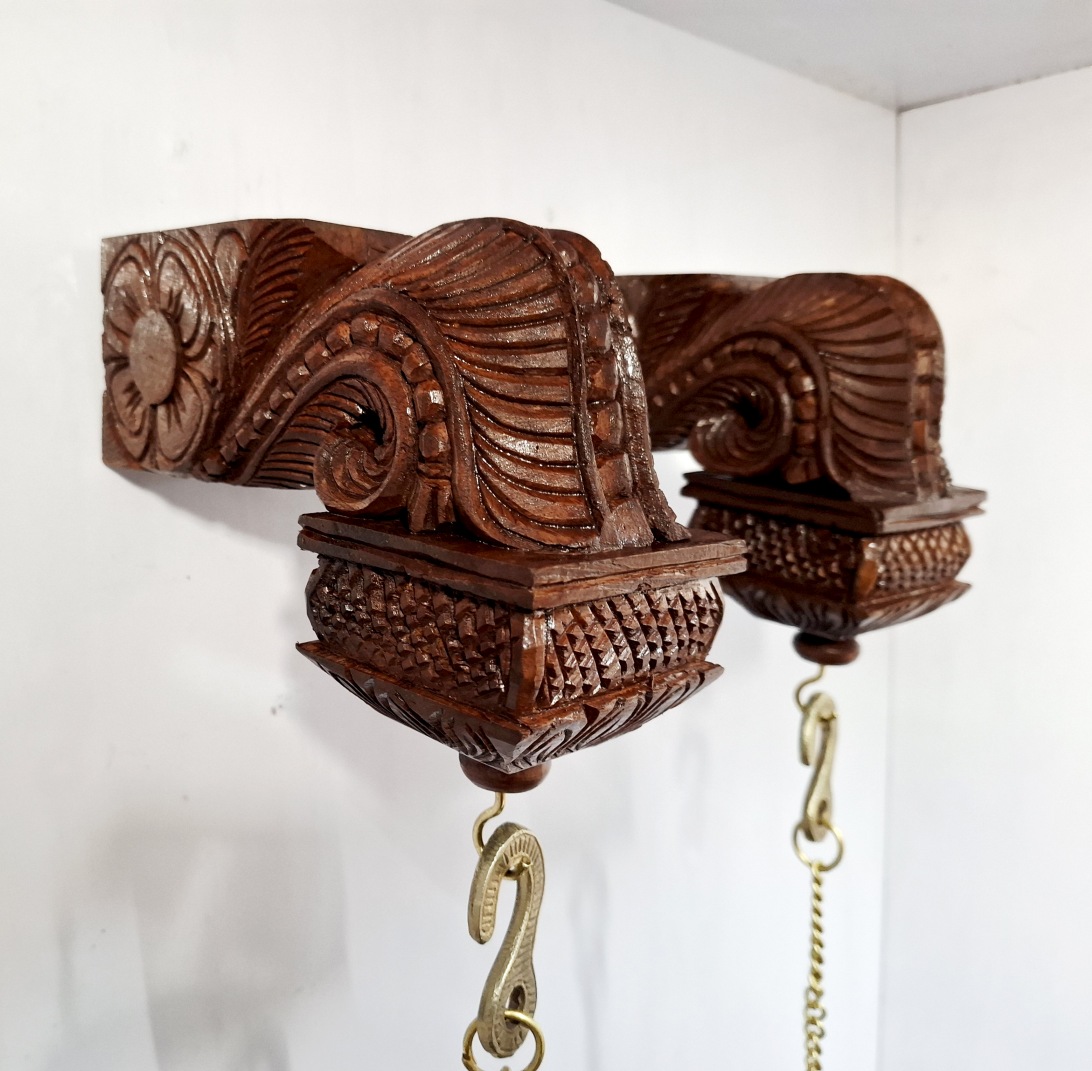 Bodhil Wooden Wall Corbel Pair (2 Pcs) – Brown Finish with Brass Diya Lamps | Handmade Door Entrance Bracket | Hanging Décor | Ready to Ship
