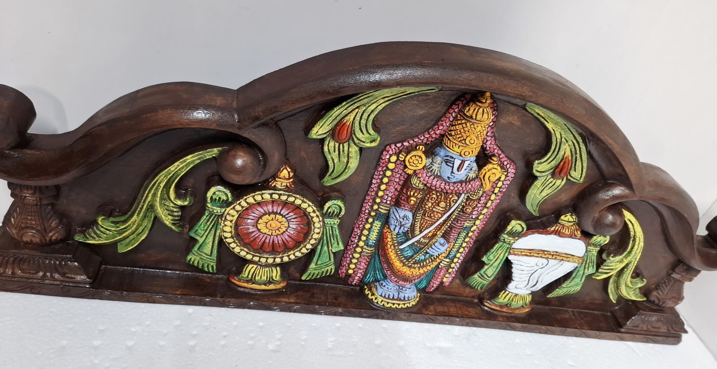 Wooden Balaji Wall Panel 30 Inch | Hand-Carved Shanku Chakra Temple Art | Multicolor Decor Original price was: 219.00$.Current price is: 186.00$.