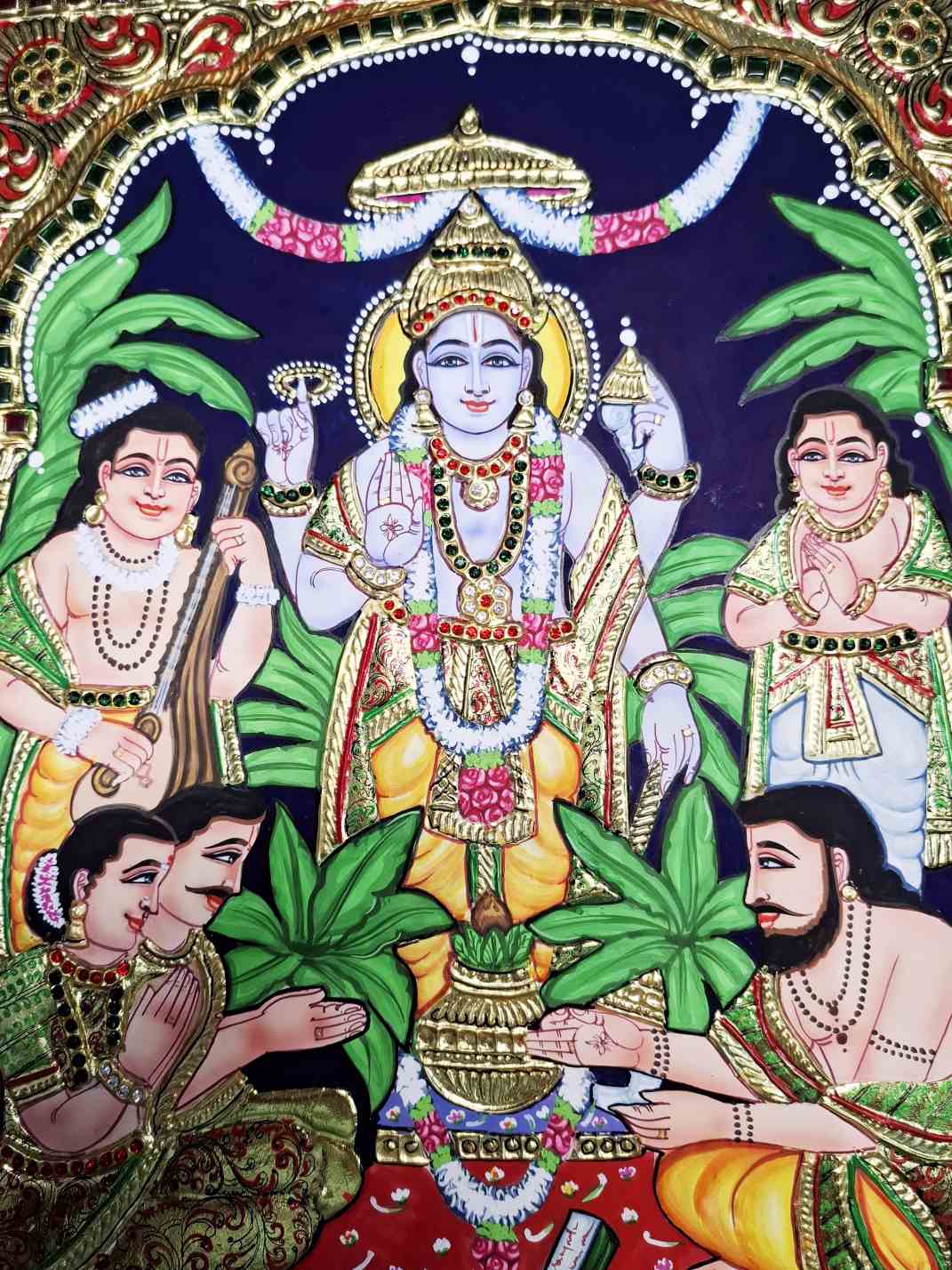 Authentic Lord Satyanarayana Tanjore Painting | | 22K Gold Foil, Jaipur Stones, Teakwood Frame 18×15 inch | Spiritual Gift & Temple Décor Original price was: 245.00$.207.00$Current price is: 207.00$.
