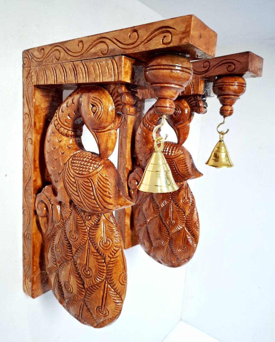 Wooden Peacock Wall Bracket Pair 12 Inch | Hand-Carved Solid Wood Corbels with Bells Original price was: 155.00$.132.00$Current price is: 132.00$.