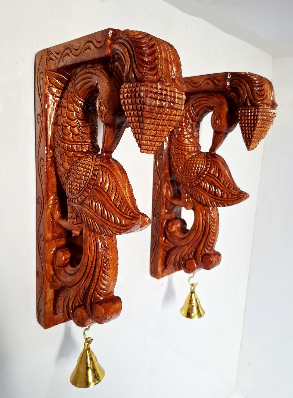 Wooden Peacock Wall Bracket Pair | 12 Inch Hand-Carved Brown Finish with Brass Bells | Set of 2 Original price was: 159.00$.135.00$Current price is: 135.00$.